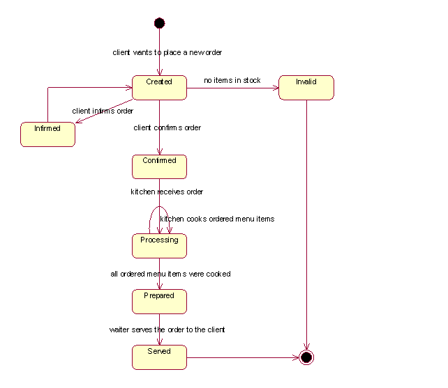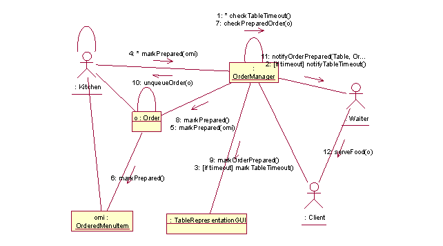 later be used to process an order placed by a client. The Waiter class defines an internal class WaiterTimeoutThread which will later be used to remind a waiter to
