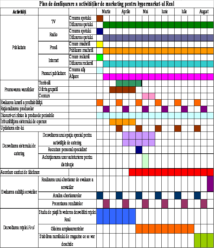 In vederea bunei desfasurari a activitatii de marketing se impune luarea unor masuri cu caracter organizatoric. Acestea au drept scop urmarirea planului de activitati de marketig pentru hypermarketul Real.