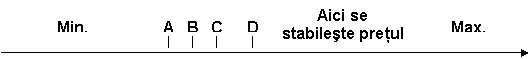 In figura de mai jos sunt reprezentate aceste conditii, care se situeaza intre doua posibilitati limita: pretul minim si pretul maxim.