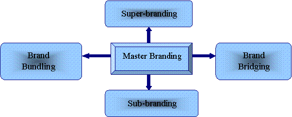 Strategia "Brand-bridging". Cand o firma doreste sa-si faca cunoscute produsele si serviciile in strainatate, master brandul poate sponsoriza crearea unui nou brand pana cand acesta este atat de puternic incat sa-si creeze singur un loc. Spre deosebire de "super brand", master brand-ul nu este initial ascuns. Acest lucru permite master brandului sa se extinda mai mult decat ar fi putut inainte de intervenirea noului brand. Aceasta strategie poate fi foarte importanta si de asemenea poate constitui o metoda pentru institutiile individuale de a se repozitiona intr-un timp destul de scurt .