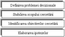 Indicarea problemei decizionale Prezentarea scopului si obiectivelor cercetarii Precizarea ipotezelor cercetarii |