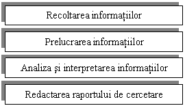 Indiferent de tipul de cercetare pe care intentionam sa o desfasuram, este necesara parcurgerea unei succesiuni de faze si activitati, care contribuie la indeplinirea scopului cercetarii si solutionarea unei anumite probleme decizionale de marketing. Atingerea unor inalte cote de profesionalism in domeniul cercetarii presupune, in primul rand, cunoasterea aprofundata a succesiunii si continutului etapelor procesului de cercetare.