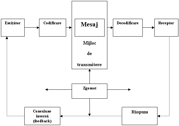 Pe masura cresterii importantei si a rolului comunicarii in activitatea de marketing a organizatiilor economice specialistii au cautat sa preia, sa adapteze si sa perfectioneze teoriile emise de predecesori cu privire la procesul comunicarii, punand la punct modele aplicabile in domeniul marketingului. Cea mai completa schema a procesului de comunicare apartine profesorului american Philip Kotler si include noua elemente: emitatorul, codificarea, mesajul, mijlocul de transmitere a mesajului, decodificarea, receptorul, raspunsul, reactia inversa (retroactiunea) si zgomotul . In figura 3 este prezentat schematic procesul de comunicare in viziunea profesorului Kotler.