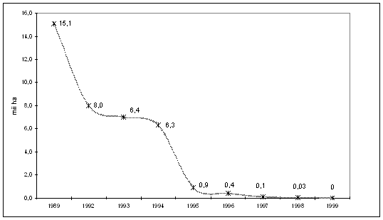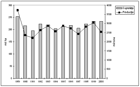 Cu toate acestea suprafata medie insamantata in anul 1997-1998 a fost cu 20% mai scazuta fata de perioada 1987-1988, in timp ce productia totala a fost cu doar 16% mai mica fata de aceiasi perioada de referinta.