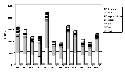 Figura 11.15. Evolutia productiilor de fructe in perioada 1989 - 2000