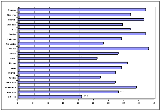 Figura 11.10. Consumul de zahar in Uniunea Europeana si in unele tari candidate (kg/ cap de locuitor)