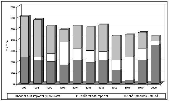 Productia medie anuala in perioada 1996-1998 a fost cu 53% sub nivelul perioadei 1987-1989. Importurile ieftine de zahar nerafinat din China, Moldova, Ucraina si Cuba au creat o puternica competitie pentru producatorii interni.