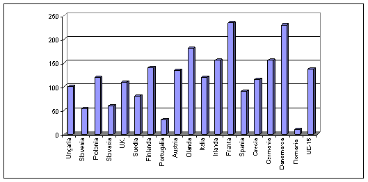 Figura 11.12 Gradul de autoaprovizionare cu zahar in U.E. si unele tari candidate