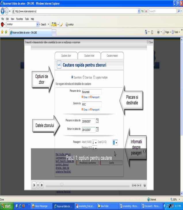 www.rezervaribilete.ro Sunt prezentate modalitati rapide de gasire a zborului dorit, la destinatia dorita, clientul fiind ajutat si de o demostratie video in ce priveste rezervarea unui bilet de avion |