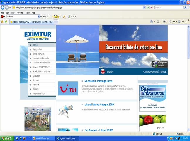 avion de pe pagina de start a site-ului agentiei PENSITUR ( www.PENSITUR.ro)