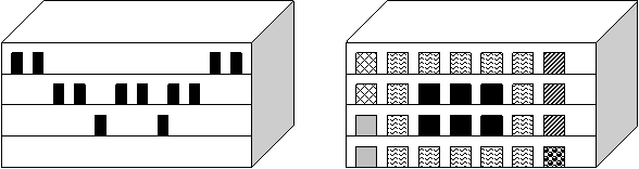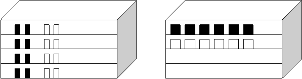 In functie de pozitia aleasa pentru expunerea produselor in rafturi, exista patru tipuri de prezentare, si anume: prezentarea pe verticala (fig. nr. 4), prezentarea pe orizontala (fig. nr. 5), prezentarea in "W" (fig. nr. 6) si prezentarea de tip "fereastra" (fig. nr. 7).
