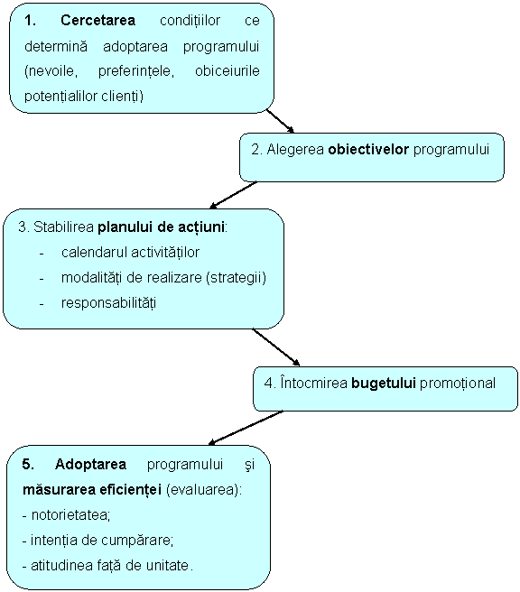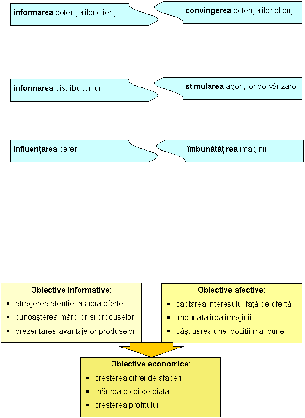 determina obiectivele politicii promotionale a unitatii comerciale;