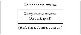 Pentru o marca de un suc natural destinat copiilor, de exemplu, calitatile de baza sunt aroma si gustul natural. Componentele exterioare sunt ambalarea, forma sub care se gaseste produsul (lichid, concentrat) si consumul de catre copii (fig. 6).