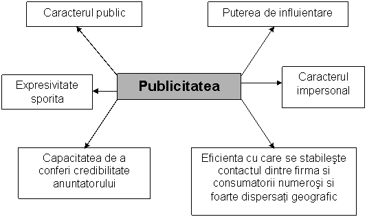 o Caracterul public - publicitatea confera legitimitate produsului astfel promovat, intrucat cumparatorul are sentimentul ca alegerea sa este inteleasa si acceptata de marele public.