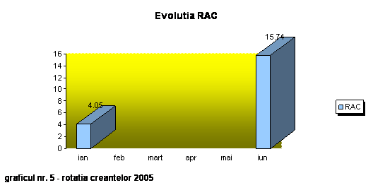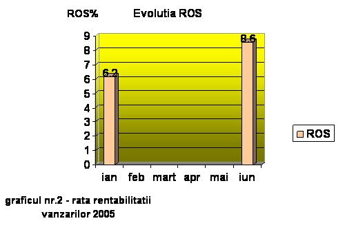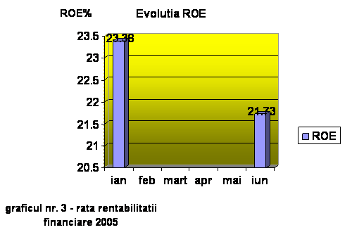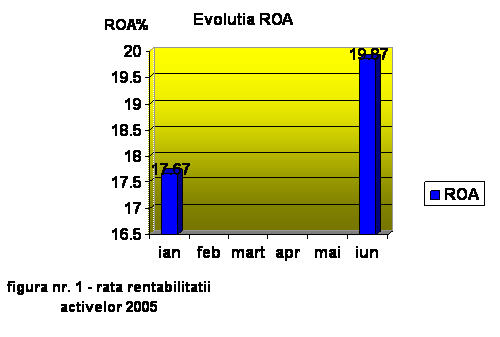 Din analiza ratei rentabilitatii activelor se observa o crestere intre lunile ianuarie - iunie 2005 , aceasta inseamna o rentabilitate "foarte buna" a capitalului investit in cele doua perioade analizate.