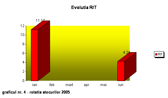 d) Rotatia stocurilor - RIT - se determina ca raport procentual intre costul vanzarilor ( CV ) si stocurile existente ( S ) in firma la finele perioadei.