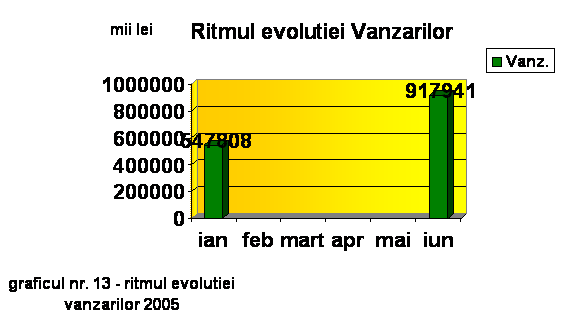 Se observa o crestere "foarte buna" a vanzarilor cu 67,56% pe perioada analizata de la 547.808 mii lei la 917.941 mii lei , reprezentand cu un trend al vanzarilor favorabil. Aceasta crestere se datoreaza in mare parte scaderii cheltuielilor exceptionale si prin aceasta costul vanzarilor.