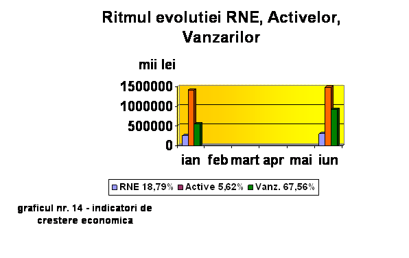 Din analiza efectuata la acesta firma se observa o crestere a rezultatului net al exercitiului intarindu-se capacitatea de autofinantare cu 18,79% . Totodata urmarind si evolutia activelor din analiza lor se observa o modesta crestere economica cu 5,62%, iar pe de alta parte un trend favorabil al vanzarilor cu 67,56% ( graficul nr. 14 )