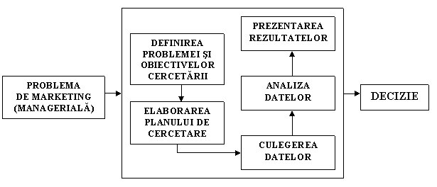Datorita faptului ca amploarea si complexitatea cercetarilor de marketing prezinta diferente mari pe sectoare, domenii de activitate sau nivele, este necesara evidentierea unei structuri de etape general acceptate - cea a autorului american P. Kotler .