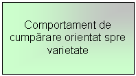 Comportamentul de cumparare orientat spre varietate apare atunci cand consumatorii manifesta o implicare redusa in decizia de cumparare si cand diferentele intre marcile comerciale sunt semnificative. In astfel de cazuri, consumatorii schimba rapid marcile pe care le achizitioneaza. Procesul decizional este alcatuit din cinci etape: recunoasterea nevoii, cautarea informatiilor, evaluarea variantelor, decizia de cumparare si comportamentul post-cumparare.