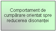 Comportamentul de cumparare orientat spre reducerea disonantei se manifesta atunci cand consumatorii sunt puternic implicati in achizitionarea unui produs scump, cumparat rar sau riscant si cand constata, in acelasi timp, putine diferente intre marcile comerciale existente. Dupa achizitionare, cumparatorii pot incerca o stare numita disonanta post-achizitie (disconfortul de dupa vanzare) daca observa anumite dezavantaje la produsul cumparat sau daca aud aprecieri favorabile la adresa altor marci.