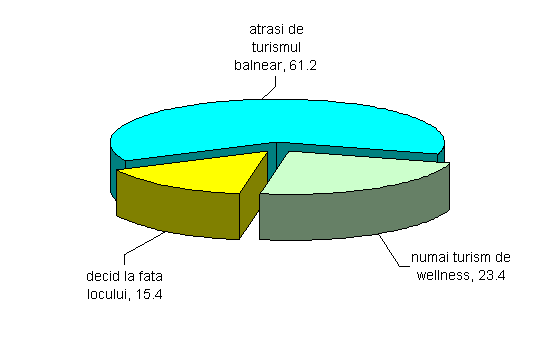 Turismul balnear are trei componente: tratamentul , la care apeleaza majoritatea consumatorilor de turism balnear, preventiv sau intretinere si wellness-ul care este pentru Romania inca un concept nou si de lux, abia in ultimii cativa ani incepand sa se deschida centre spa, insa foarte putine si destinate celor cu venituri peste medie. Prin wellness nu se urmareste cresterea sperantei de viata sau tratarea diverselor afectiuni ci crearea unei stari de bine, de relaxare, o activitate ce aduce mai multa satisfactie, implinire, entuziasm in viata. Wellness-ul poate fi integrat in cadrul oricarei structuri de cazare cu o suprafata mai mare pentru a aduce un plus de valoare clientilor, investitiile pentru un centru wellness recuperandu-se in doi-trei ani, insa cerere nu prea exista, nici informare, dar mai ales investitiori pentru acest domeniu.