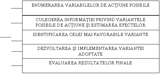 In continuare se impune concentrarea pe listarea fara nici o evaluare a posibilelor cursuri de actiune, urmata de realizarea demersurilor pentru alegerea celor mai favorabile alternative existente in vederea atingerii obiectivelor prin luarea in considerare a unor criterii de alegere.