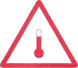 a)Un triunghi avand la mijloc marcat un termometru cu mercur, atat termometrul cat si conturul triunghiului fiind marcate cu rosu pe fond alb, semnificatia fiind materie ce se transporta in stare calda