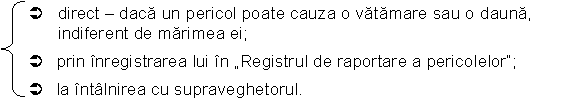 PERICOLUL - trebuie sa fie raportat persoanei responsabile de zona de lucru respectiva.