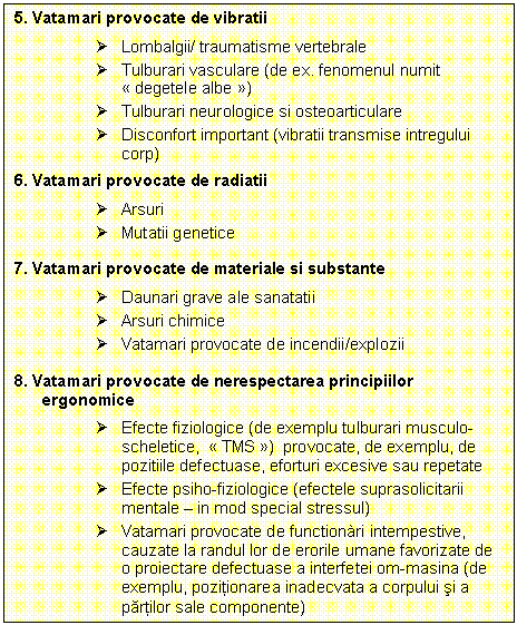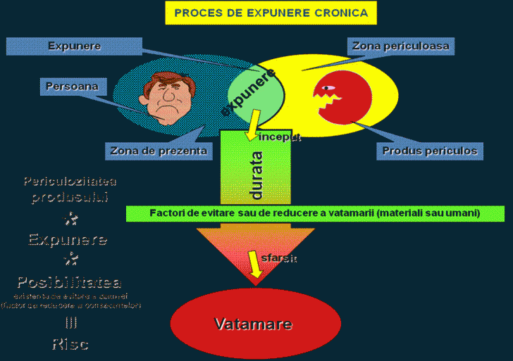 efecte daunatoare omului / unitatii de lucru, in care o persoana este expusa la