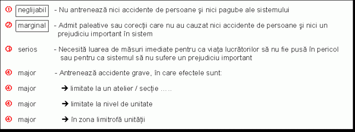 Ca NIVEL al PROBABILITATII DE APARITIE E UNUI EVENIMENT PERICULOS, se utilizeaza: