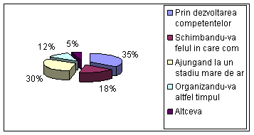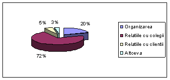 Raspunsurile de la aceasta intrebare ne indica si mai mult faptul ca exista probleme in comunicarea, colaborarea angajatilor in colectiv, respectiv intre management si angajati. Din aceste raspunsuri se vede ca angajati au timp pentru a-si realiza sarcinile in timpul acordat pentru aceasta. Iar procentajul la problemele interpersonale a angajatilor este mic, deci nu se poate zice ca exista probleme interpersonale.
