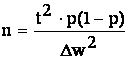 unde: n = numarul de persoane ce formeaza esantionul; t = coeficientul corespunzator probabilitatii cu care se garanteaza rezultatele cercetarii; p = proportia componentelor esantionului care poseda caracteristica principala cercetata; se va considera p=0,5 pentru care dispersia de la caracteristica principala studiata are valoarea maxima; Dw = eroarea limita maximum acceptata.