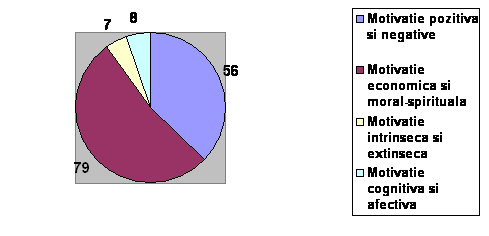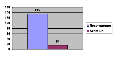 Astfel, o majoritate considerabila a respondentilor a ales varianta "recompenselor" drept stimulent care primeaza in strategia de motivare adoptata in organizatia acestora, adica 90% (135 de persoane), in timp ce numai 15 persoane, reprezentand 10% din numarul angajatorilor chestionati a ales varianta "sanctiunilor" ca stimulent de baza in strategia de motivare a angajatilor.