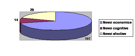 Se observa din graficul prezentat mai sus ca tipul de necesitati ale angajatilor pe care angajatorii de la nivelul Institutului National de Boli Infectioase"Prof. Dr. Matei Bals" urmaresc sa le satisfaca in general este cel al nevoilor economice - 71,34% dintre respondenti intrand in aceasta categorie (107 persoane). In ceea ce priveste celelalte doua categorii, probabil ca raspunsul a fost din nou viciat datorita unei exprimari conceptuale nu foarte bine intrata in vocabularul angajatorilor romani ("nevoi cognitive"), care au fost neglijate in favoarea nevoilor afective, astfel incat angajatorii care au raspuns ca incearca sa urmareasca acoperirea nevoilor afective ale angajatilor lor sunt in numar de 29 persoane (19,33%). In favoarea nevoilor cognitive ale angajatilor lor au optat numai 9,33% (14 persoane) dintre respondenti. In acest context, a fost demonstrata ca fiind adevarata ipoteza de la inceputul studiului nostru, potrivit careia "primeaza satisfacerea nevoilor economice ale angajatilor".