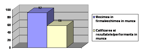 In analiza criteriilor in functie de care angajatori efectueaza cresteri salariale, constatam cu surprindere ca ipoteza de la care am pornit in studiul nostru a fost contrazisa. Astfel, ipoteza era urmatoarea "daca la nivelul institutiilor publice primeaza vechimea in firma/vechimea in munca drept criteriul de crestere al salariului, in cadrul organizatiilor private, calificarea si rezultatele/performanta este criteriul aplicat". Insa, se pare ca amprenta regimului comunist si putinele schimbari care au intervenit in Codul Muncii adoptat in anul 2003, nu au fost suficiente sa imprime angajatorilor romani o noua mentalitate. De aceea, in continuare predomina politicile de salarizare in functie de vechimea in firma si vechimea in munca (61,33%, respectiv 92 respondenti), in detrimentul mai democraticei politici a salarizarii in functie de calificarea si rezultatele, respectiv performanta in munca a angajatilor, care a fost aleasa drept raspuns numai de catre 58 angajatori, reprezentand 28,67% din totalul respondentilor.