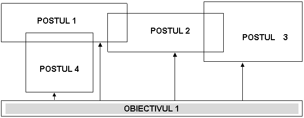 Carcateristicile sarcinilor posturilor sunt conforme cu tipurile tintelor de atins. Sunt aplicate doua scheme care realizeaza legatura cauzala dintre obiective si sarcinile posturilor. Legatura cauzala liniara obiective - sarcini este schematizata in fig. 5.1. Legatura cauzala neliniara obiective - sarcini (fig. 5.2) este acceptata pentru organizatii de mare anvergura sau pentru cele care dovedesc o mare flexibilitate manageriala, in ceea ce priveste organizatia si personalul acesteia.