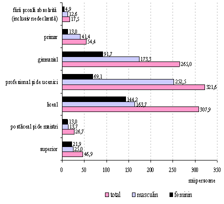 Somerii dupa nivelul de instruire, pe sexe [10]
