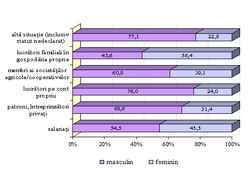 Structura populatiei ocupate dupa statutul profesional, pe sexe, in 2002[17]