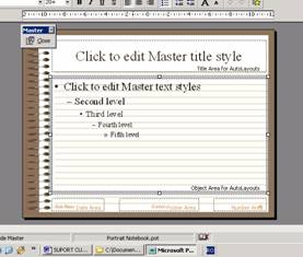 Slide master (matrita de diapozitive) - este matrita tuturor diapozitivelor prezentarii in afara diapozitivelor titlu. Matrita contine in partea de us o zona de titlu (Title area), in mijloc o zona de a obiectelor (Object area) si in partea de jos o zona pentru subsol cu spatii rezervate datei/orei, subsolului si numarului diapozitivului. Modificarile uzuale se refera la text si la modalitatile de marcare a paragrafelor. Pentru modificari se folosesc butoanele de pe bara de formatare .