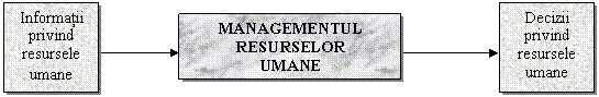 Definitia deciziei ca "produs finit" al managementului ofera posibilitatea tratarii conducerii resurselor umane intr-o abordare procesuala. Conform definitiilor larg acceptate, conceptul de proces exprima desfasurarea unui fenomen, transformarea succesiva sau ansamblul de operatii prin care se realizeaza o lucrare. Pornind de la aceste considerente, putem arata ca managementul resurselor umane constituie o insiruire de procese prin care sunt puse in practica o serie de actiuni legate intre ele, in vederea realizarii unui scop propus. Asa cum procesul de productie cuprinde faze in urma carora materiile prime si materialele sunt transformate in produse finite, managementul resurselor umane cuprinde o desfasurare de evenimente prin care informatiile ce privesc resursele umane (marimile de intrare), pe baza unui efort de gindire, sunt transformate in decizii (marimi de iesire):
