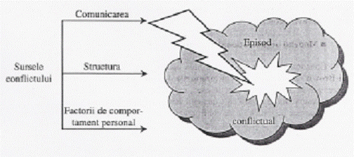 Modelul organizational de conflict Robbins prezinta conflictul ca avand urmatoarele surse principale (fig.49):