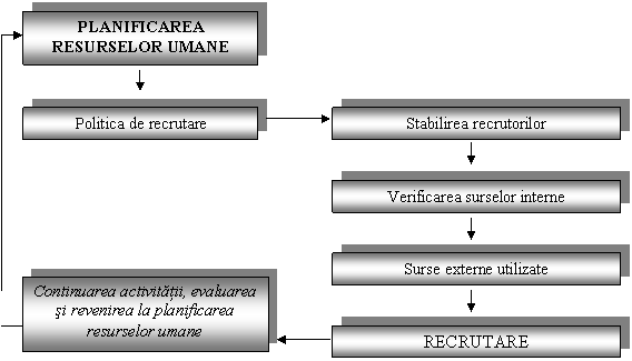 Recrutarea reprezinta activitatea de identificare a persoanelor care au acele caracteristici solicitate de posturile vacante si de atragere a acestora in cadrul organizatiei, asigurand persoanele din care se va efectua selectia. Cu cat numarul de candidati este mai mare, cu atat recrutarea acelora care corespund cel mai bine cerintelor, postului si care prin calitatile lor pot oferi garantia performantei este mai facila.