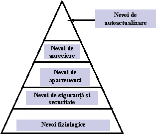 Abraham Maslow (1954) a sustinut ca nevoile umane sunt ierarhizate, de la nevoile de baza, fiziologice la nevoi de ordin superior de auto-dezvoltare si de implinire.