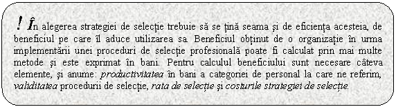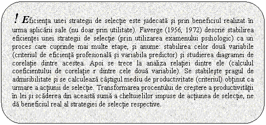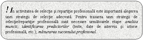 Principalele concepte utilizate in selectie sunt: predictori si criterii de eficienta profesionala.