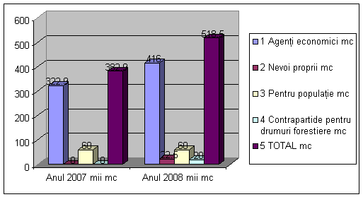 Din padurile Statului, pentru 2008, s-au recoltat 400 de mii de metri cubi de masa lemnoasa, fata de 371 de mii valorificata in 2007.