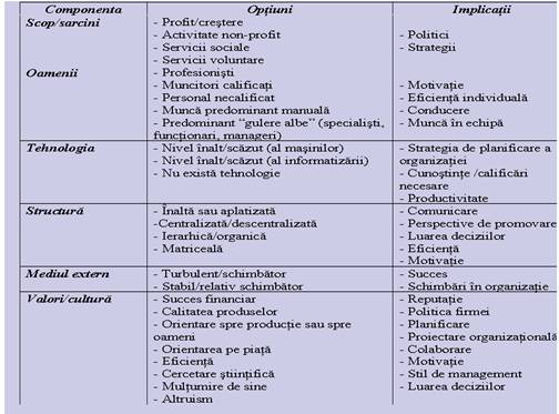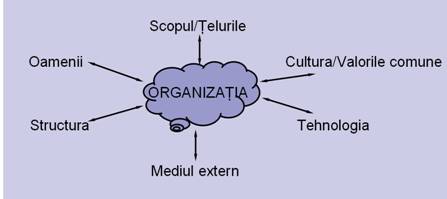 Modelul organizational utilizat pentru a descrie procesele de design organizational este constituit pe cateva componente majore ale unei organizatii: