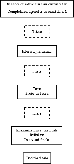 Un proces tipic de selectie urmareste parcurgerea unor faze, fiecare dintre ele identificandu-se cu o anumita metoda de selectie.