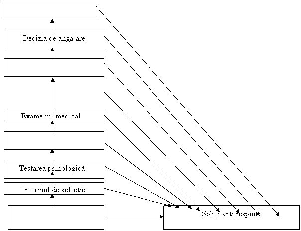 Care dintre combinatiile prezentate mai jos reflecta cel mai corect etapele procesului de selectie a personalului care nu au fost mentionate (spatiile goale) in constructia modelului ?