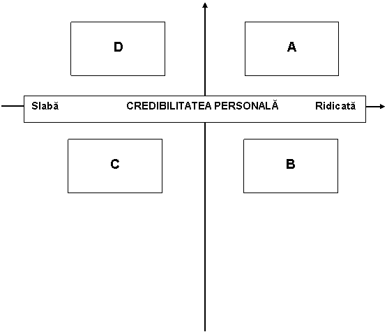 Promovarea managementului prin persuasiune poate fi realizata daca managerii se regasesc in spatiul A - fig. 3.4. In diagrama respectiva apar drept "coordonate": capacitatea de expertizare a conducatorilor, respectiv credibilitatea personala a conducatorilor.